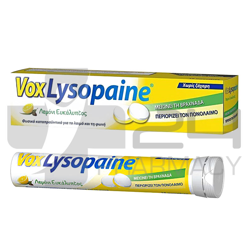 Τo Voxlysopaine δρα ως ένα προερχόμενο από τη φύση καταπραϋντικό για το λαιμό και βοηθά στην ενίσχυση της φωνής και τη μείωση της βραχνάδας. Περιέχει στυπτηρία (alum) και βρύα Ισλανδίας (Iceland moss).