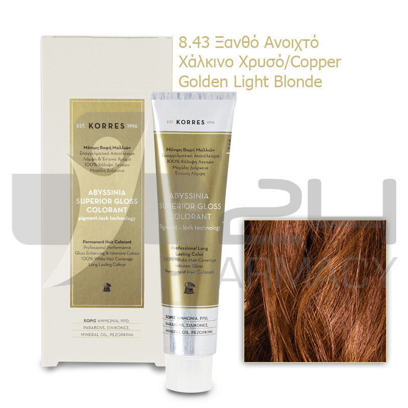 Korres Abyssinia Colorant 8.43 Ξανθό Ανοιχτό Χάλκινο Χρυσό 50ml
