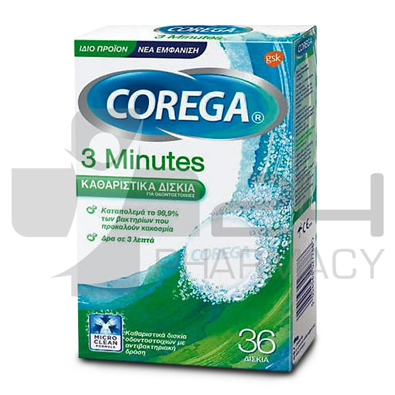 Corega 3 Minutes Καθαριστικά Δισκία Οδοντοστοιχιών 36 Δισκία