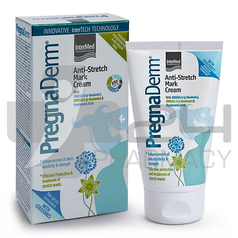Η Pregnaderm Anti-stretch mark cream χάρη στην τεχνολογία InterTECH και τον μοναδικό συνδυασμό βιοδραστικών συστατικών & δερμοκοσμητικών βοτάνων, συμβάλει αποτελεσματικά στην πρόληψη της εμφάνισης των ραγάδων αλλά και στην αντιμετώπιση αυτών, που μπορεί να εμφανίζονται στην περιοχή της κοιλιάς, του στήθους, των μηρών και των γλουτών ενισχύοντας παράλληλα την ελαστικότητα & την αντοχή του δέρματος.
