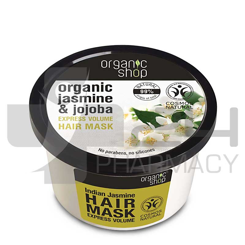 Organic shop Indian Jasmine Hair Mask , Μάσκα μαλλιών για γρήγορο όγκο , Βιολογικό Γιασεμί & Jojoba