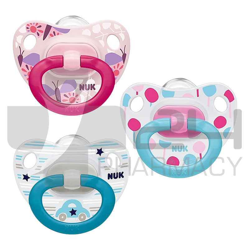 √ Όλες οι πιπίλες NUK διαθέτουν το σύστημα NUK Air System. Μέσω μιας βαλβίδας, o αέρας διαφεύγει από τη θηλή, με αποτέλεσμα η πιπίλα να παραμένει μαλακή και εύπλαστη και να ανακουφίζει τη γνάθο.