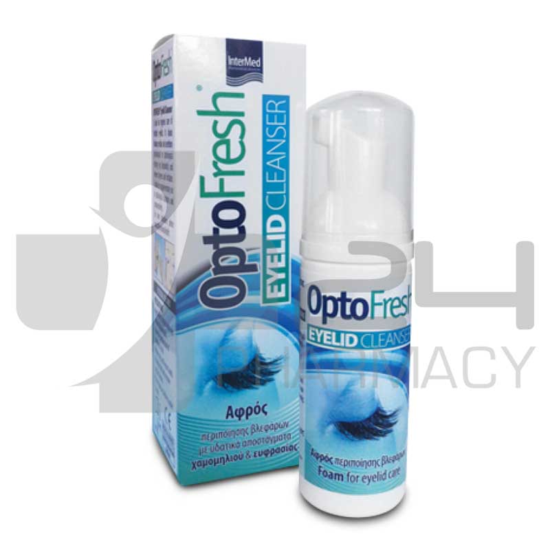 Το Optofresh eyelid cleanser, χάρη στα υδατικά αποστάγματα χαμομηλιού και ευφρασίας που περιέχει, είναι ο ιδανικός αφρός καθαρισμού και περιποίησης των ερεθισμένων βλεφάρων. Τα βλέφαρα, λόγω της πολύ λεπτής επιδερμίδας τους, είναι ευάλωτα σε πολλούς ερεθιστικούς παράγοντες, με αποτέλεσμα την εμφάνιση ξηρότητας και ερεθισμών. Τόσο οι εκκρίσεις των οφθαλμών –είτε φυσιολογικές, είτε παθολογικής αιτιολογίας – όσο και η έκθεση των βλεφάρων στην πληθώρα των εξωγενών, ερεθιστικών παραγόντων (σκόνη, καπνός, καυσαέρια, ξηρός αέρας, μακιγιάζ) ερεθίζουν τα βλέφαρα και τα καθιστούν επιρρεπή στην εμφάνιση βλεφαρίτιδας και άλλων δερματικών παθήσεων.