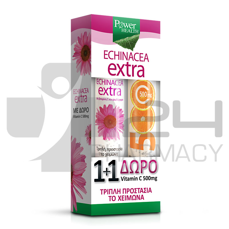 Power Health Echinacea Extra με Στέβια 24 Αναβρ. Δισκία & Δώρο Vitamin C 500mg 20 Αναβρ. Δισκία