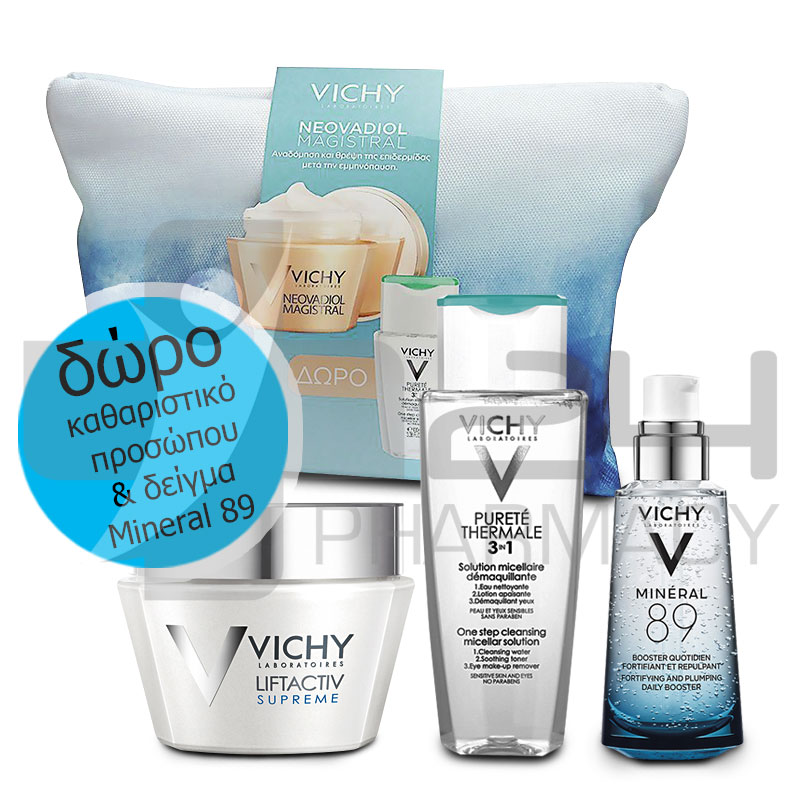 Vichy Σετ Liftactiv Supreme Κρέμα Ημέρας 50ml & Υγρό Καθαρισμού 3 σε 1 100ml & Δείγμα Mineral 89 1,5ml