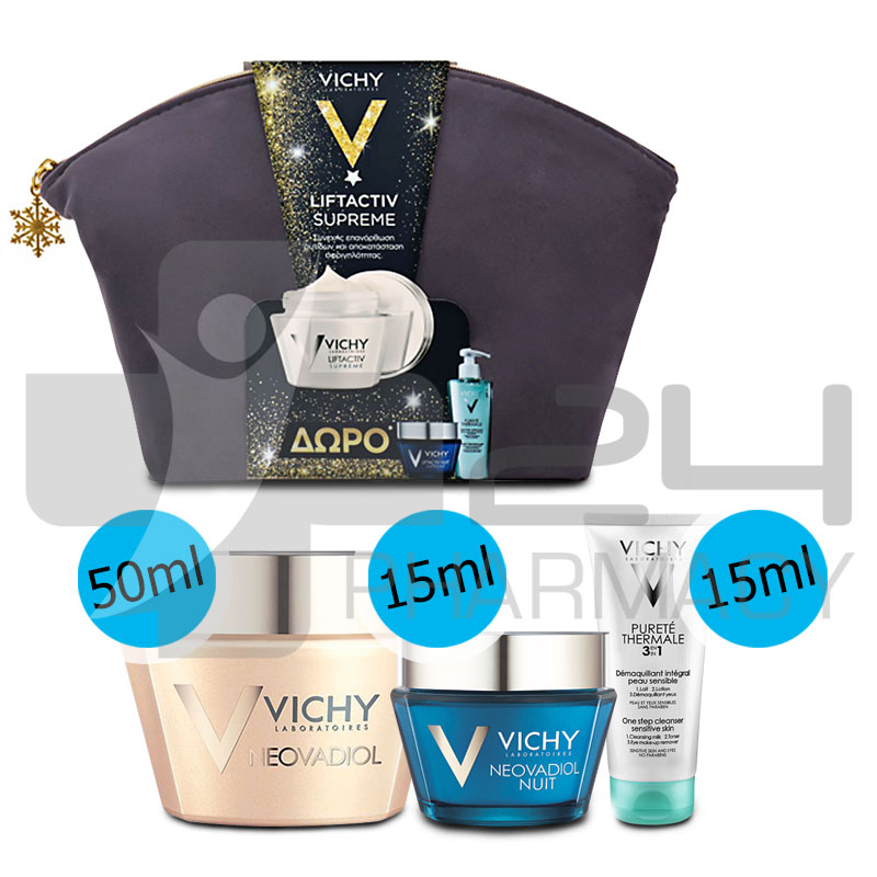 Πληροφορίες ΠροϊόντοςΚρέμα ημέρας για κανονικές και μικτές επιδερμίδες που αντιμετωπίζει τις επιπτώσεις της εμμηνόπαυσης στην επιδερμίδα. Η επιδερμίδα σας μπορεί να αποκτήσει ξανά τη νεανική της όψη. Επανέρχεται η πυκνότητα και η ελαστικότητα της επιδερμίδας, το περίγραμμα του προσώπου αναπλάθεται, η χαλάρωση μειώνεται και η λάμψη και η ομοιογένεια αποκαθίστανται. Για τις γυναίκες στην εμμηνόπαυση που θέλουν να αντιμετωπίσουν τις επιπτώσεις της ορμονικής επιβράδυνσης στην επιδερμίδα τους: την απώλεια της πυκνότητας, του όγκου, της σφιγηλότητας, της φρεσκάδας και της λάμψης. Αποτελεσματικότητα Μετά από 14 χρόνια έρευνας και 13 διπλώματα ευρεσιτεχνίας, τα εργαστήρια της Vichy κατάφεραν να δημιουργήσουν την κατάλληλη σύνθεση συστατικών, ικανή να αντιμετωπίσει τις επιπτώσεις της εμμηνόπαυσης στην επιδερμίδα. Δημιούργησαν ένα ισχυρό σύμπλοκο αναπλήρωσης που μιμείται τη δράση της ορμόνης νεότητας DHEA και επηρεάζει όλους τους σημαντικούς δείκτες νεότητας της επιδερμίδας. Η επιδερμίδα αναζωογονείται, μεταμορφώνεται σταδιακά. Ξαναβρίσκει την πυκνότητα και την ελαστικότητά της, αναδομείται, η χαλάρωση μειώνεται και το περίγραμμα του προσώπου αναδιαμορφώνεται. Η λάμψη και η ομοιογένεια αποκαθίστανται. ΑΠΟΚΑΤΑΣΤΑΣΗ ΠΥΚΝΟΤΗΤΑΣ: Pro-Xylane. Η συγκέντρωση αυτού του βιομιμητικού μορίου που αποτελεί ευρεσιτεχνία της L'Oréal αυξήθηκε φτάνοντας το 3%, συγκέντρωση δεκαπλάσια από εκείνη στις προηγούμενες συνθέσεις. Δρα σε 3 παραμέτρους που σχετίζονται με τη νεότητα της επιδερμίδας: στο Κολλαγόνο I και III που αποτελούν πηγές πυκνότητας και σφριγηλότητας, στο πάχος της επιδερμίδας μέσω αύξησης της σύνθεσης γλυκοζαμινογλυκανών (GAG), ενώ ταυτόχρονα μειώνει τις καφέ κηλίδες, καθώς δρα στους ινοβλάστες. Οι ρυτίδες γεμίζουν, ενώ η επιδερμίδα γίνεται πιο σφριγηλή, πιο λαμπερή και ομοιόμορφη. ΒΕΛΤΙΩΣΗ ΤΗΣ ΥΦΗΣ: Hepes Γνωστό για τις στοχευμένες απολεπιστικές του ιδιότητες δρα στις πρωτεάσες, τα ένζυμα που σχετίζονται με τη διαδικασία της φυσικής απολέπισης. Ρυθμίζοντας την απολέπιση, μεταμορφώνει την επιδερμίδα. ΕΝΥΔΑΤΩΣΗ & ΣΦΡΙΓΗΛΟΤΗΤΑ: Hydrovance Παράγωγο της ουρίας και υγροσκοπικό μόριο τελευταίας γενιάς αιχμαλωτίζει το νερό στην επιδερμίδα (απορροφά 82% του βάρους του σε νερό), ενώ ταυτόχρονα προωθεί τη φυσική απολέπιση καθώς διεγείρει τις πρωτεάσες. Η επιδερμίδα ενυδατώνεται και γίνεται πιο λεία με αποτέλεσμα να είναι πιο σφριγηλή, άνετη και απαλή. ΑΝΑΠΛΗΡΩΣΗ ΛΙΠΙΔΙΩΝ : Hédione Παράγωγο ιασμονικού οξέος που αυξάνει τη φυσική παραγωγή λιπιδίων (σκουαλενίων, τριγλυκεριδίων και κηρών), τα οποία υπάρχουν στο σμήγμα και μειώνονται λόγω ορμονικών μεταβολών. Η επιδερμίδα αποκτά μεγαλύτερη ελαστικότητα και άνεση. ΠΥΚΝΟΤΗΤΑ & ΟΓΚΟΣ*: Σε 4 ώρες: > +39% Τόνωση > +14% Σφριγηλότητα >+ 22% Ελαστικότητα Σε 28 ημέρες**: > Αναδόμηση χαρακτηριστικών στο 71% των γυναικών > Αναζωογονημένη επιδερμίδα στο 90% των γυναικών Σε 3 μήνες: > -17,5% πτυχώσεις*** > -25,8% χαλάρωση προσώπου**** *DTM σε 40 γυναίκες, με την κρέμα ημέρας για κανονική/μικτή επιδερμίδα ** CUT PS Γερμανία. *** Πολυκεντρική μελέτη-224 γυναίκες, μελέτη πτυχώσεων (desiscore) κρέμα ημέρας για ξηρή επιδερμίδα. **** Αξιολόγηση της μείωσης της χαλάρωσης του προσώπου, πολυκεντρική μελέτη σε 224 γυναίκες, κρέμα ημέρας για ξηρή επιδερμίδα. ΑΠΟΧΡΩΣΗ & ΥΦΗ ΕΠΙΔΕΡΜΙΔΑΣ: Σε 7 ημέρες: > Ενυδατωμένη επιδερμίδα στο 94% των γυναικών* > Θρέψη στο 96% των γυναικών* > Λάμψη στο 73% των 