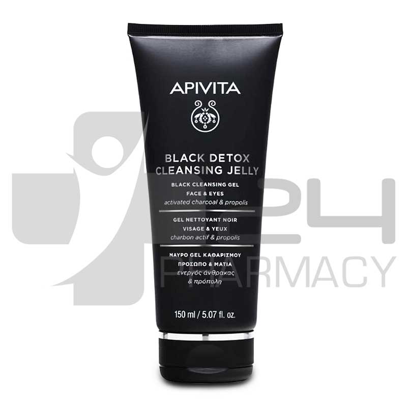 Black detox cleansing gel with activated charcoal and propolis to effectively cleanses the face and eyes without causing dryness.