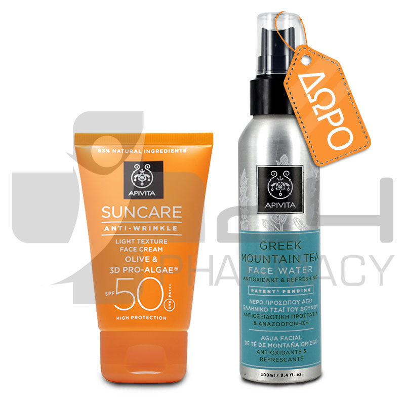 The APIVITA Anti-wrinkle SUNCARE product range combines sun protection and unique anti-aging action. Suncare, anti-wrinkle light texture face cream SPF 30. Protection and specialized effect.