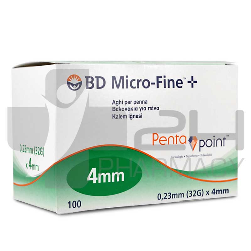 BD Micro-Fine Pen Needle, 32G x 4mm. For safe use with maximum safety in adults and children. Reduces the risk of intramuscular administration. Simplifies the injection technique, with single and single administration. Excellent shape for maximum ease and reliability. Stainless steel of special surgical quality.