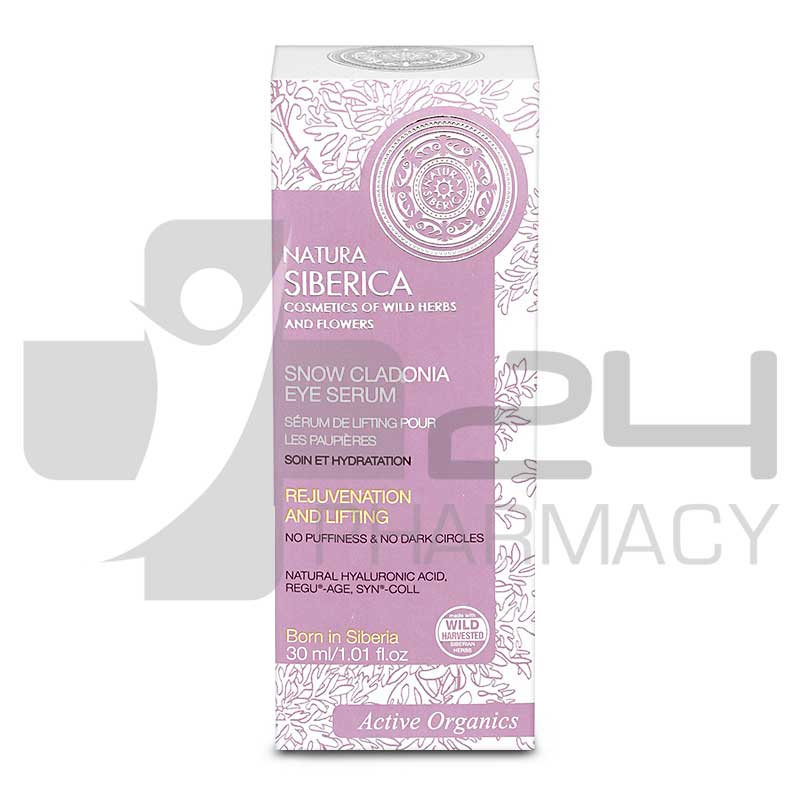The Active Snow Cladonia Eye Serum is a great treatment, which visibly transforms skin for a more youthful appearance. It helps to diminish the depth of fine lines and wrinkles, giving your eyes a more toned and healthy look by reducing puffiness, restoring elasticity, and combating dark circles.Snow Cladonia, which stays green even during severe Siberian winters, contains the unique usnin acid, which works absolute magic on your skin by actively regenerating skin cells and effectively slowing down the aging process.Hyaluronic acid provides instant moisturization and diminishes the look of fatigue, while the natural complex REGU-AGE improves blood microcirculation and dramatically reduces dark circles and unsightly puffiness around the eyes.SYN-COLL increases the natural production of collagen, reduces the appearance of deep lines and wrinkles, and firms and tones the skin for a genuinely beautiful glow.Extracts of wild harvested Hesperis Sibirica and organic Mallow make skin noticeably smoother and suppler, for an appealing bright look.
