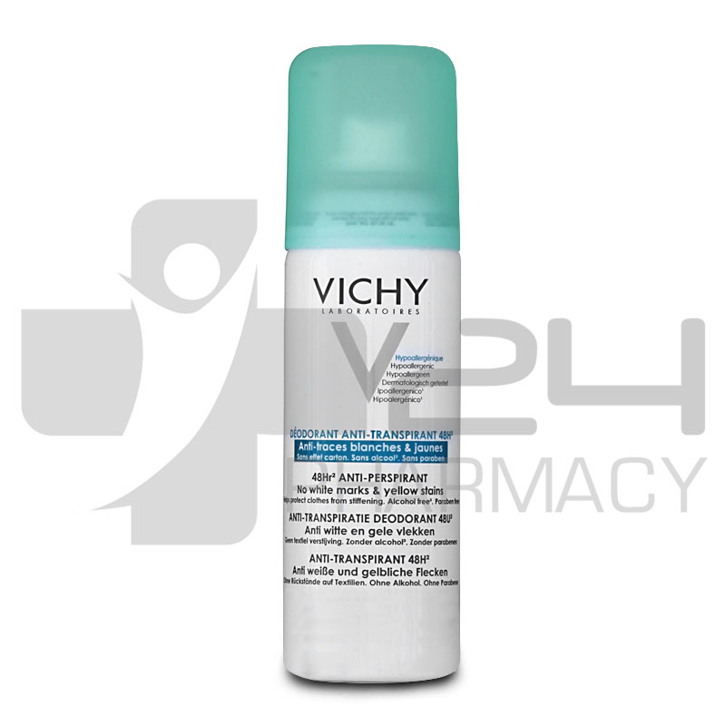 The Vichy 48 Hour Anti-Perspirant Deodorant Spray provides an immediate fresh sensation with long-lasting anti-perspiration efficacy. No white marks & yellow stains. Helps protects clothes from stiffening. Alcohol free. Parabens free.