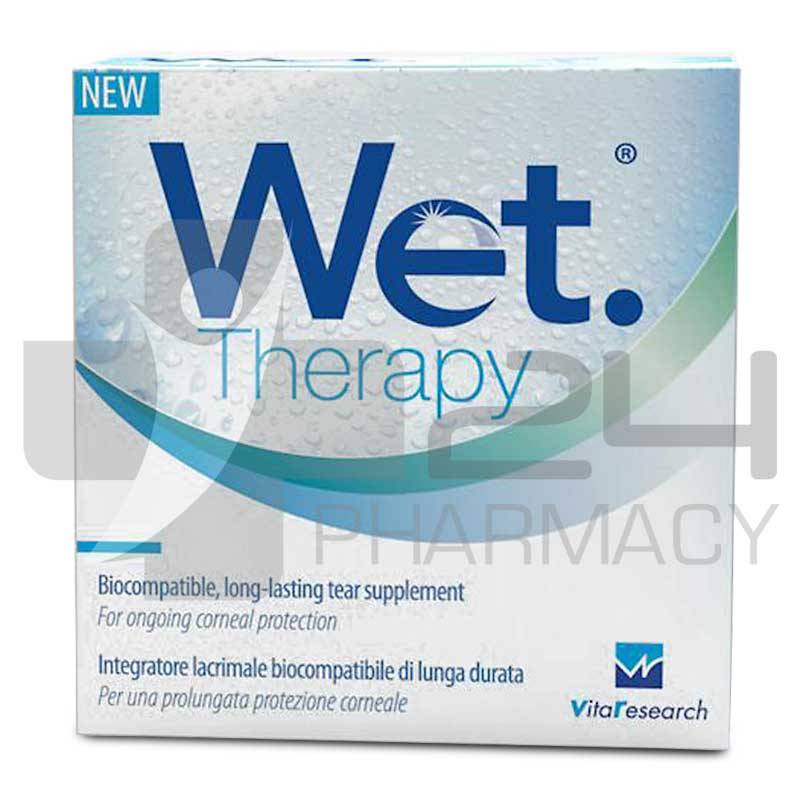 Wet therapy is a preservative-free, sterile, isotonic buffered aqueous solution containing sodium hyaluronate, polyethylene glycol 400, boric acid and balanced mineral salts (electrolytes).